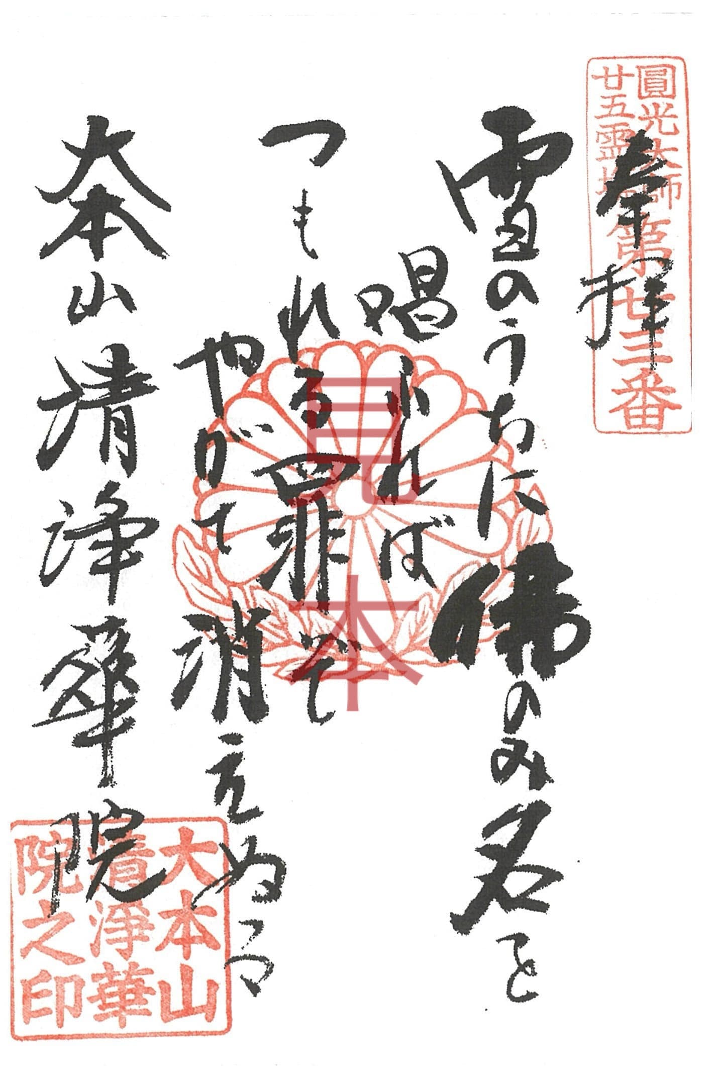 大本山清浄華院の御詠歌「冬の御詠歌」の御朱印です。