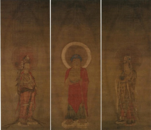 国宝 四明普悦筆絹本著色『阿弥陀三尊像』